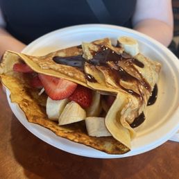 Our first time here. Looks can be deceiving because the outside looks a little sketchy. It is actually quite quaint on the inside with lots of seating. The menu written colorfully on the walls and has a lot of options. Service was great, everyone was friendly. I got an iced chai latte, it was perfect. Wish I would have gotten a bigger size. My daughter got the aloha pineapple smoothie, she loved it. For food I got the avocado toast. It is just that, don't think there was any seasoning. I'm glad we got pepper in the plasticware. It was good, just very basic. My daughter got the fruitella crape. It was very rich and delicious. We were looking for a quick bite to eat and a beverage, mission accomplished.
